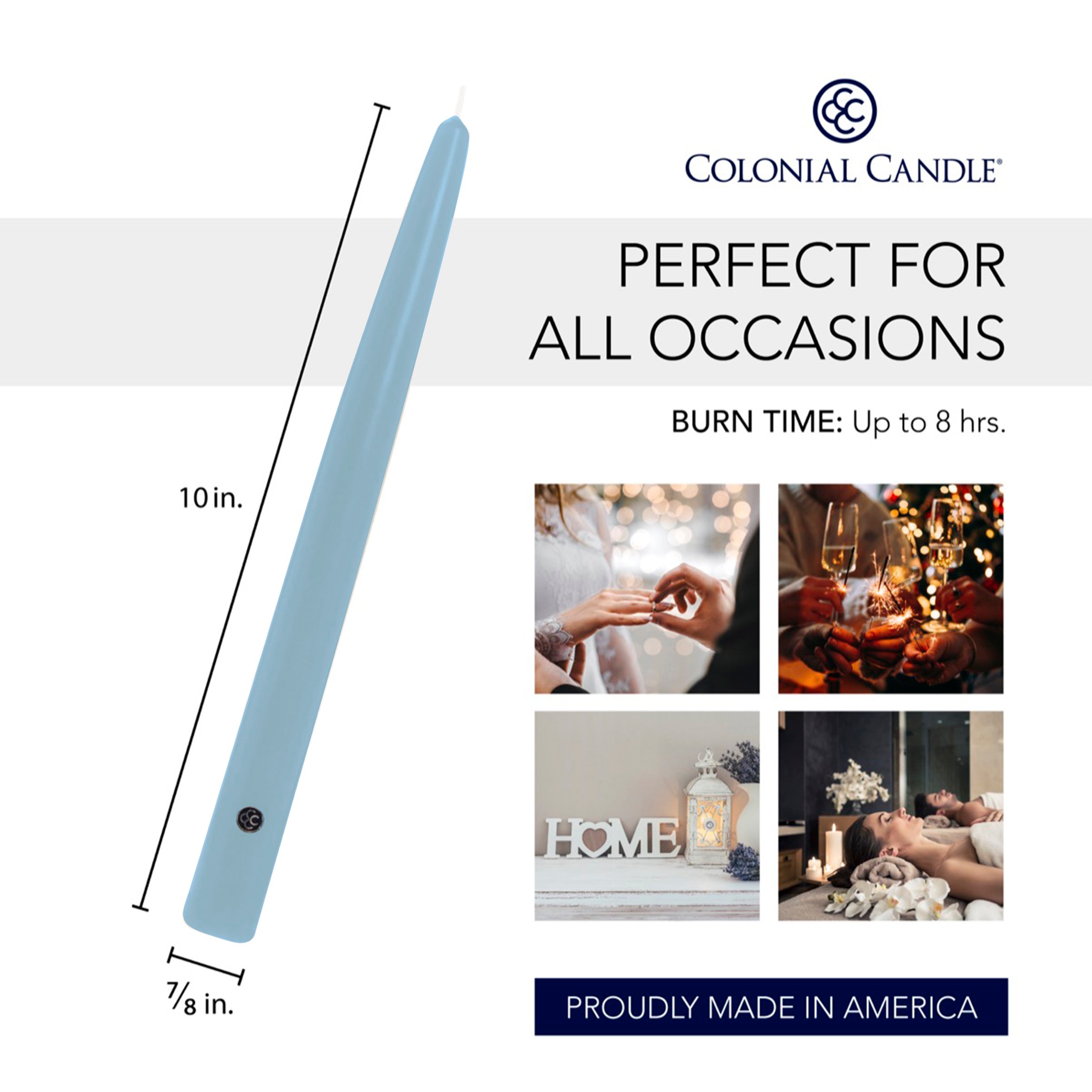 CAREFULLY CRAFTED | Carefully produced to give you the best experience with your candle. Each package contains twelve taper candles, proudly poured in the USA.For more than a century, Colonial Candles have sparked joy, created memories and established cozy corners in homes across America. We take pride in our history and look forward to moving into the future with the same values we started with – a dedication to our customers and the spaces where they live.