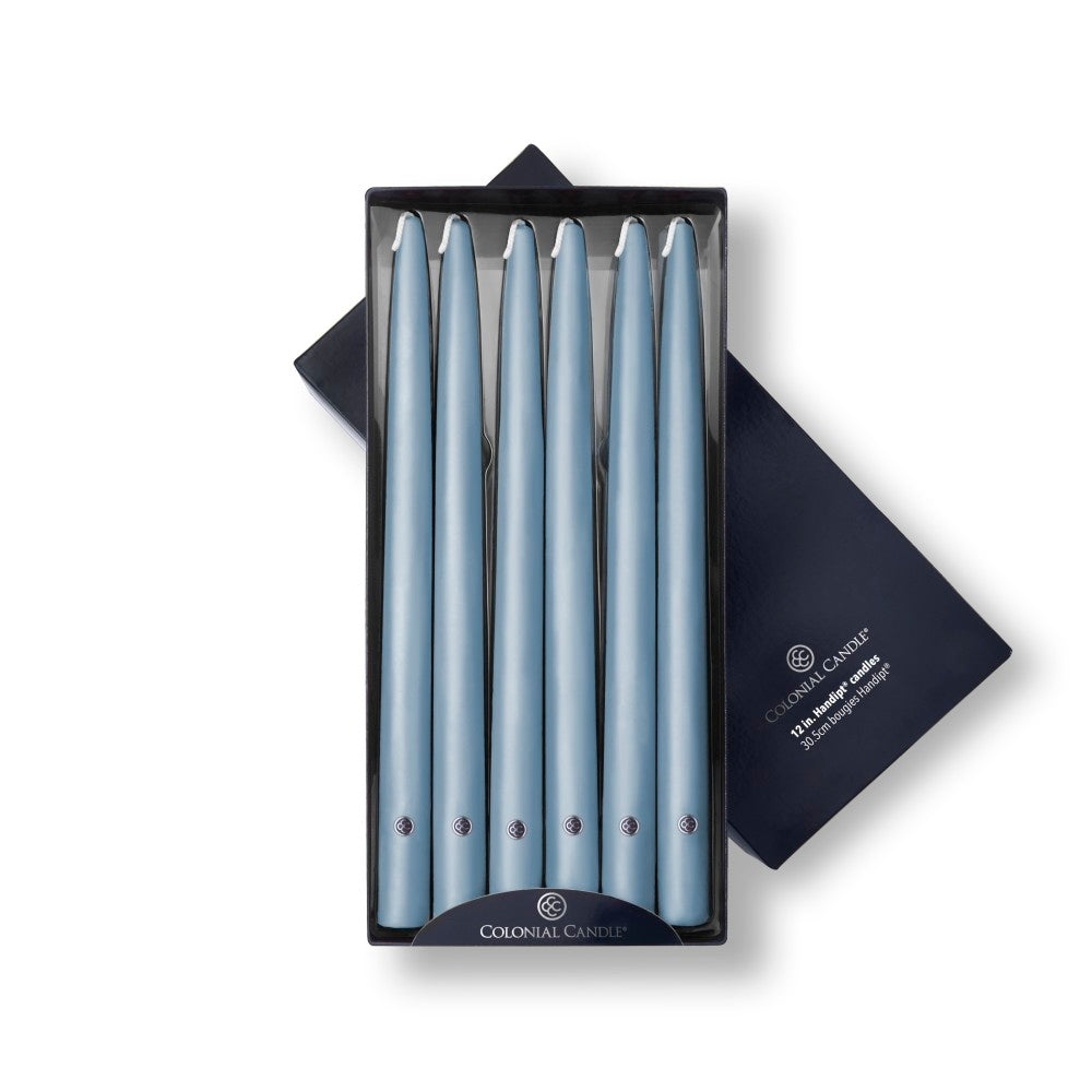A soothing neutral color, our Coastal Blue taper candles bring a breath of fresh air to your home décor. These twelve-inch candles are hand dipped, virtually drip free, and have a burn time of up to ten hours each.