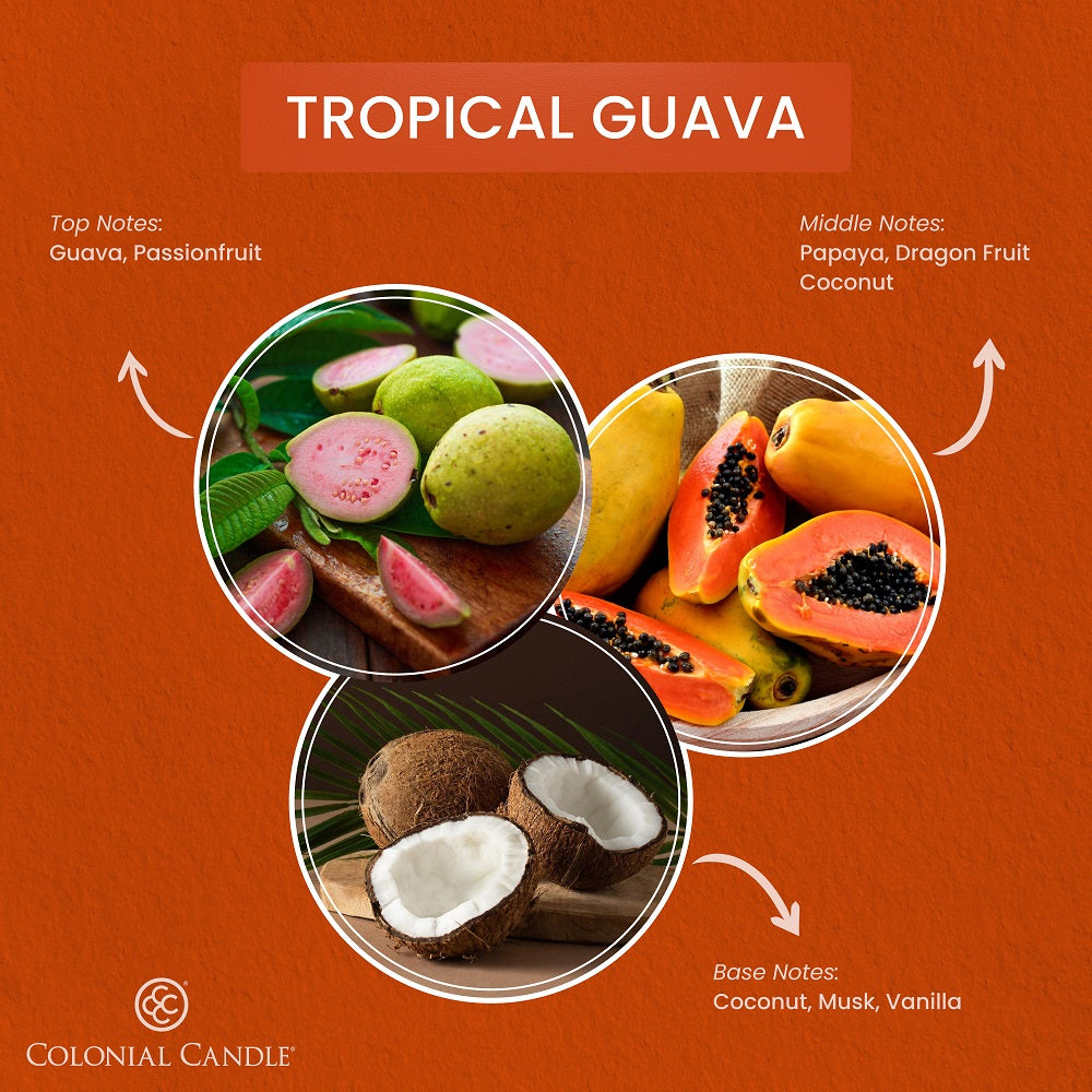 - TROPICAL GUAVA | Brighten your space with the carefree vibes of Tropical Guava. The sweet, exotic aroma of guava complemented with notes of juicy, vibrant papaya blends with smooth and creamy coconut!